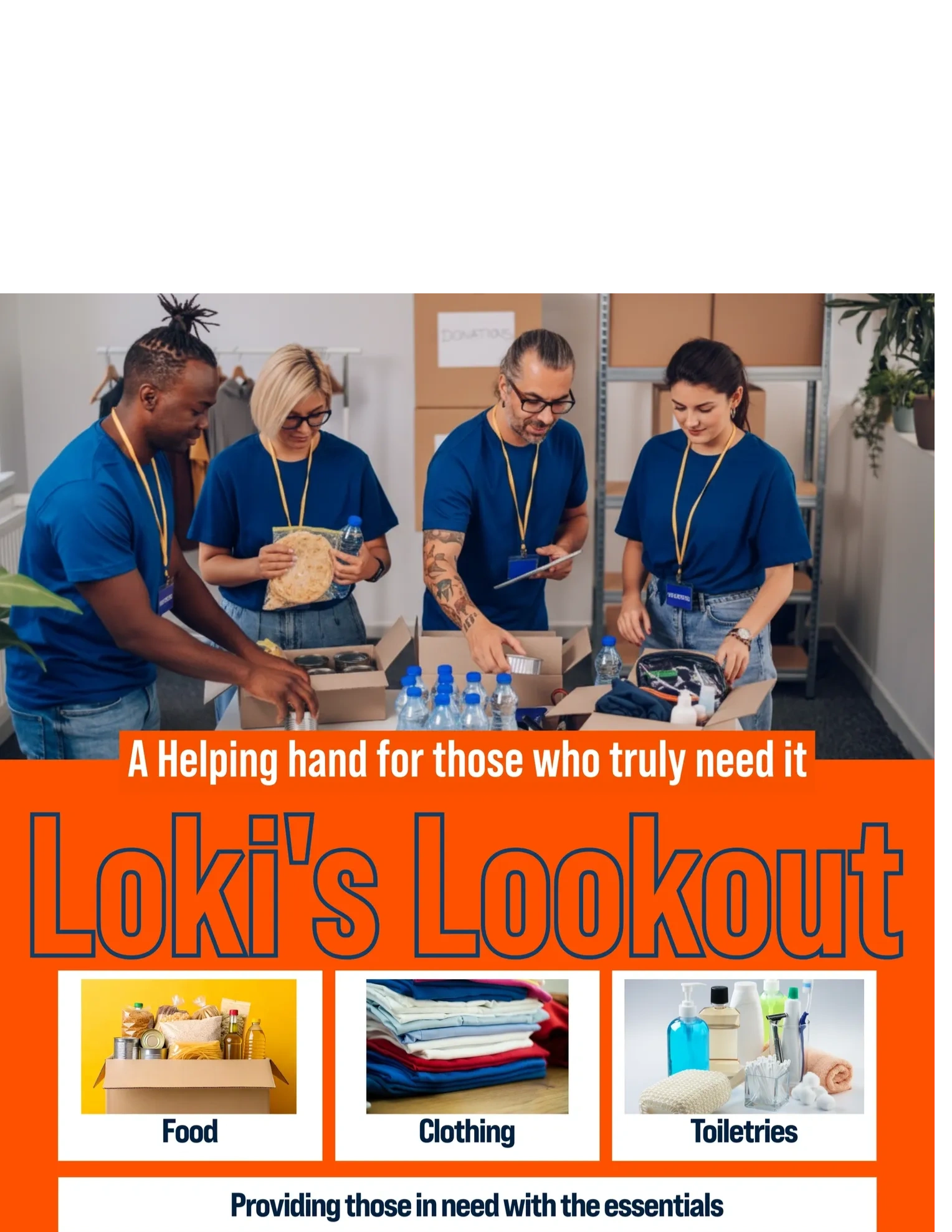 Loki's Lookout aim's to support as many members of our communities, displaced or struggling with financial instability. Human or animal, we look for ways we can help and rely on community support to bring it all to life. Help us help others with your donations and support.